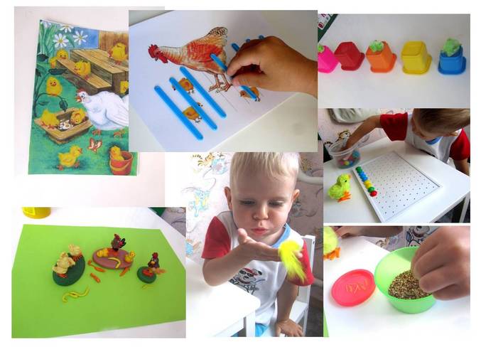 Тематические недели, дни и занятия от 0 до 3По понедельникам и четвергам я провожу с ребенком тематические занятия. В среду у нас теперь математический день, Тема занятия "Вышла курочка гулять"