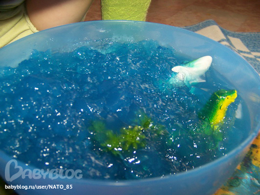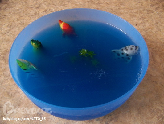 Я давно читала об этой идеи на каком-то иностранном сайте, и даже не на одном, но все было как-то не до этого, а тут прям захотелось сделать, тем более, что делается все очень просто. Для изготовления такого моря или водоема нужен пищевой желатин, вода и немного терпения пока море застывает!