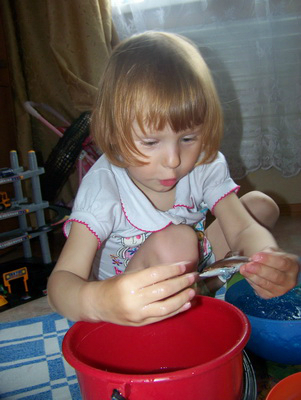 Я сразу дала ведерко с теплой водой, чтобы греть ручки, так как море холодное, и ополаскивать морских обитателей!