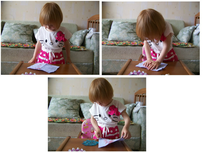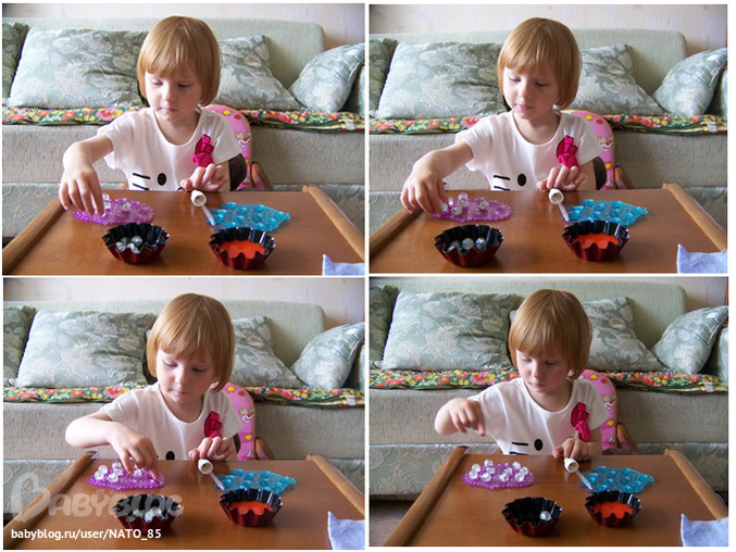 А еще ей очень понравился фокус с исчезновение водички. Я отвернулась, поворачивают на восторженный крик - мама, смотри фокус покажу!!! Заполняем, накрываем, промокаем, убираем - Чистота - Вуаля! )))