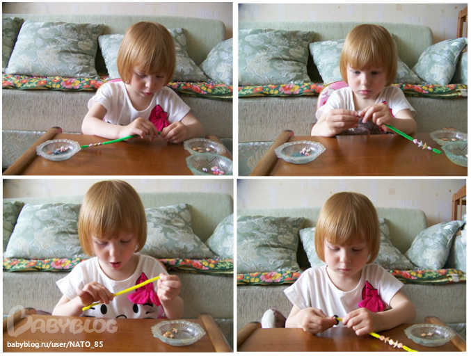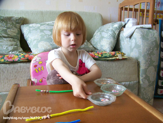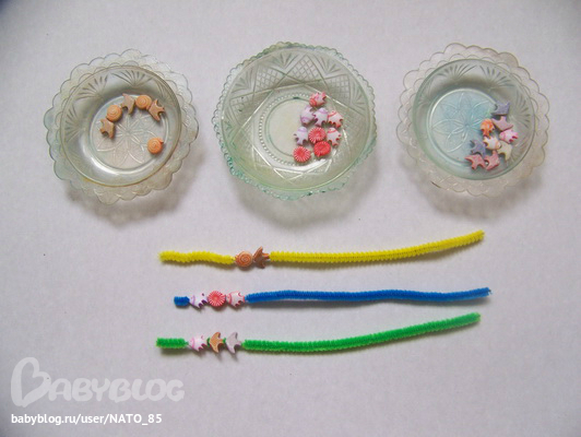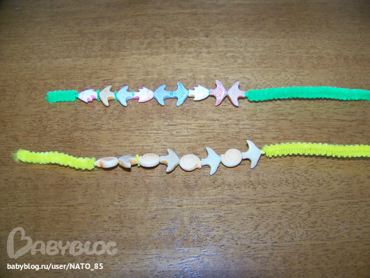 6. Продолжи ряд (сенильная проволока+бусинки рыбки)