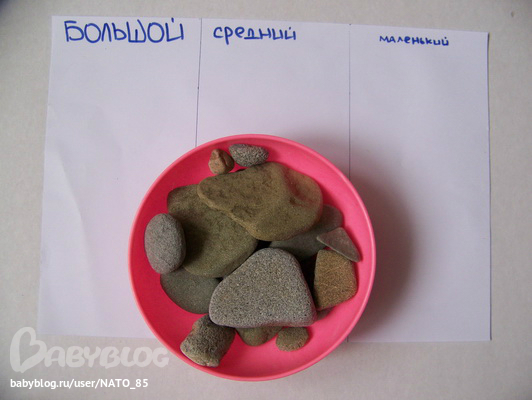 3. Размер - сортируем камушки (большой, средний, маленький)