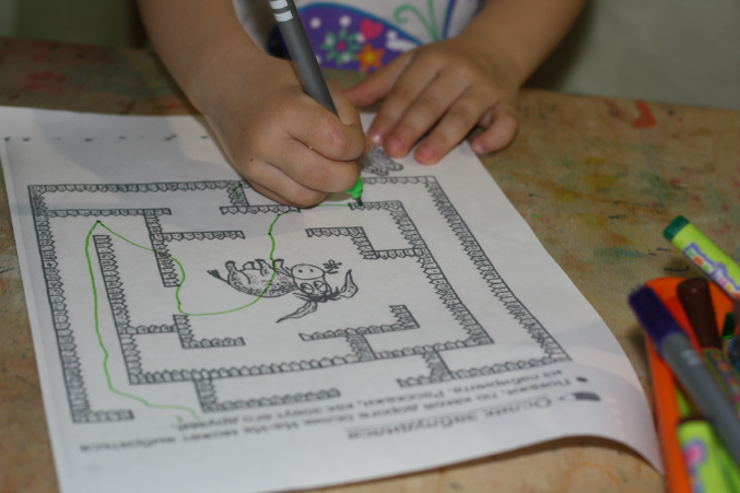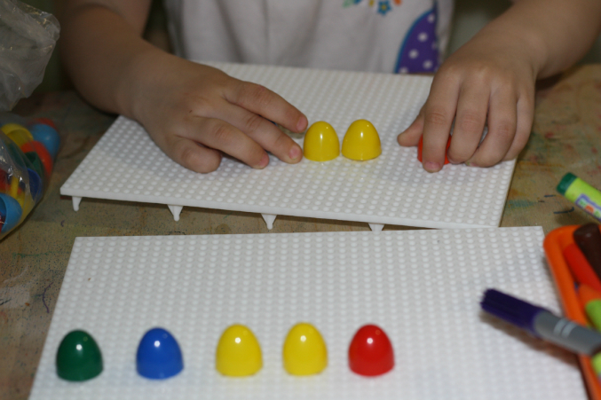 А это задание из серии - тренировка памяти. Проговаривает, кто на столе, а потом ищет то, чего не хватает. Всегда справляется. Будем дорожку увеличивать