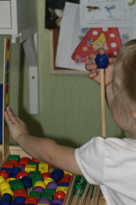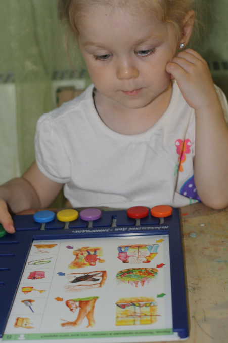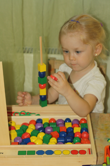 Пирамидка. Вообще, теряет - какая должна следующей идти. И теперь собирает исключительно так - вставила нужную, рукой закрыла )