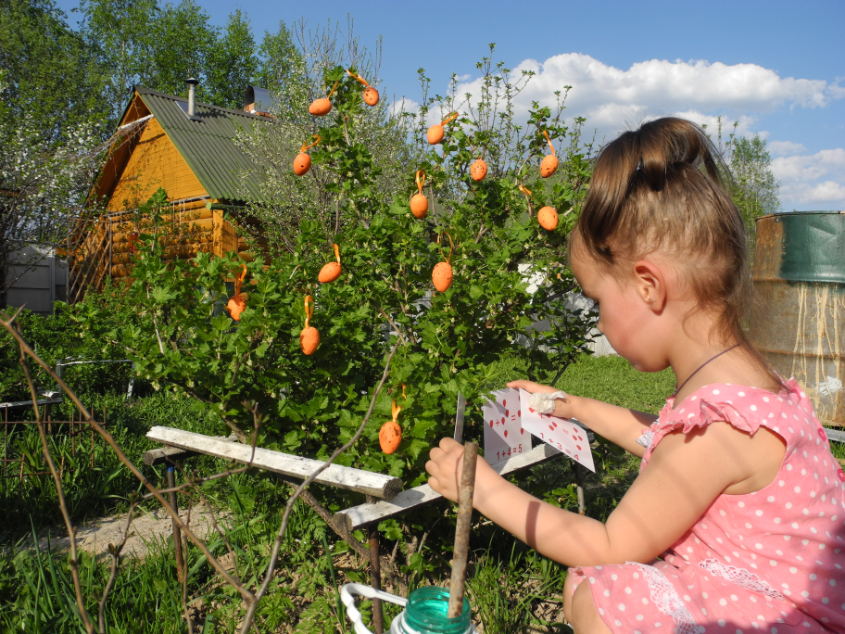 СЧЕТ. Развешивали яички на куст крыжовника.