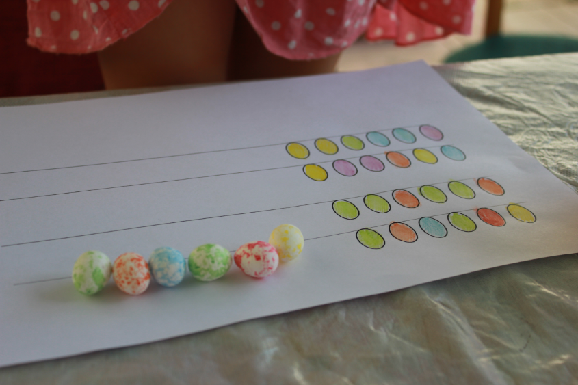 Раскладывали по примеру цветные яички
