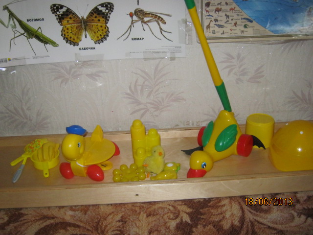2. На полочке уже желтые игрушки.