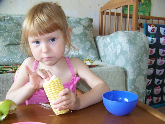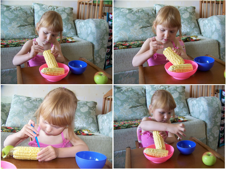 Вечно мама придумывает для дочери какие-то задания с подковыркой… Сегодня ей видите ли нужно отделить кукурузные зернышки от початка с помощью пинцета!