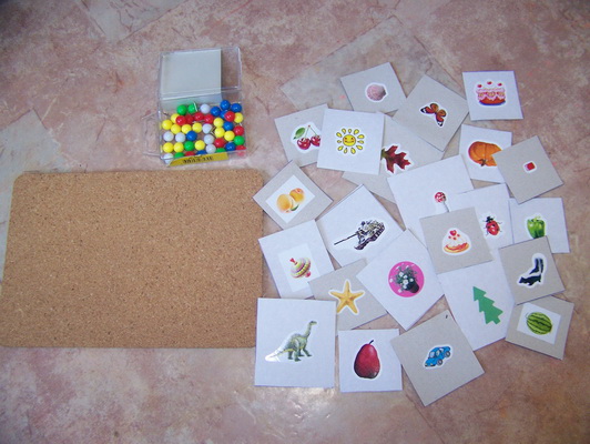 Дальше все съедобные карточки с помощью кнопок крепим к пробковой дощечке.