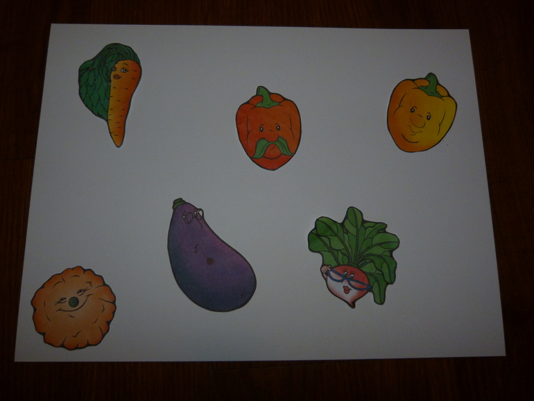 Очень красивая ящерица, а я пока боюсь пластилин давать, у нас все в рот же. Мы пока с ним вообще работать не пробовали. А у нас вчера опять жарко днем было, мы ходили в парк с утра, там листики собирала дочка, еще желудь без шапки нашла), а после дневного сна клеили овощи(собирали урожай), у меня набор с России привезенный был, я вырезала, дочка от душ помяла их) частично на зуб попробовала, потом клеили, я учила как мазать клеем-карандашом, но нам больше пальцем ковырять его понравилось, потом наклеили овощи на листик.