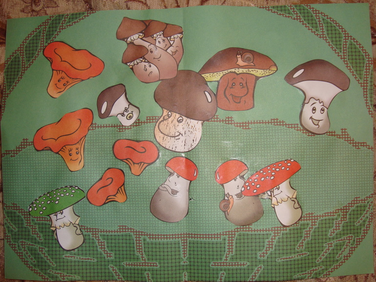 А вторая работа просто произвольно приклеенные грибы из аппликации.