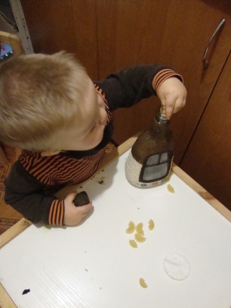 В итоге ребенок ушел в поисках более интересных заданий и решил складывать макароны в домик)