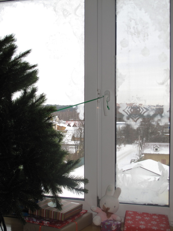 Нам подарили дырокол СНЕЖИНКИ вот мы их сделали и приклеили
