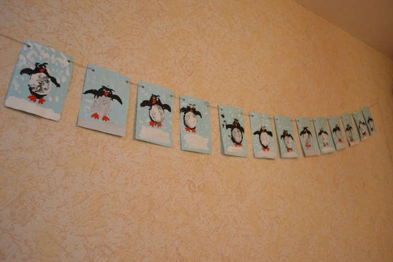 В дополнение к этой гирлянде будут еще пущены две три или из шариков ваты или из бумажных кружочков.