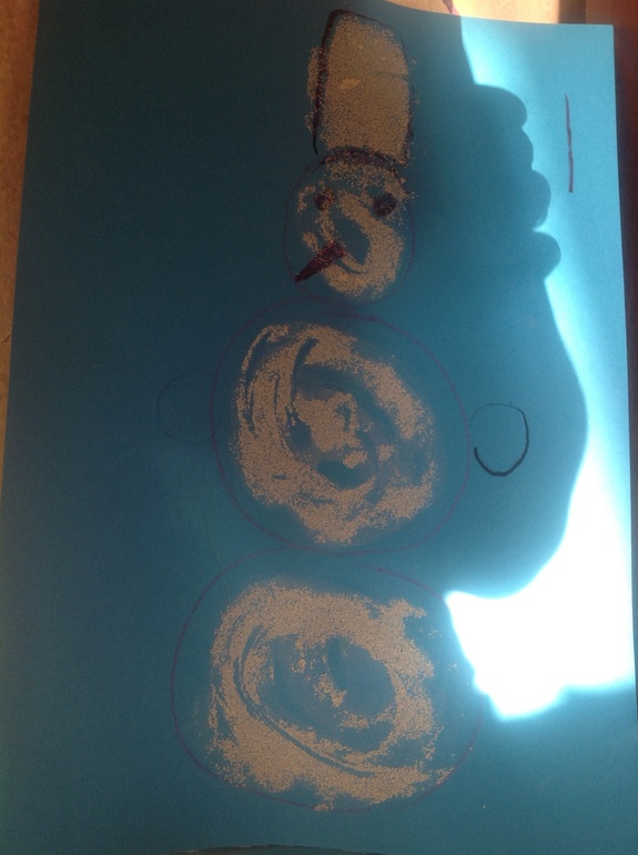 сегодня мы раскрашивали елку (ее там чуть-чуть видно из-под краски) и должны были провести волшебство - из-под краски должны были появиться снежинки (я рисовала их восковой свечкой), но снежинки почему-то не появились(( видимо надо брать акварель, а не гуашь. но зато мы обнаружили эти снежинки с обратной стороны листа.