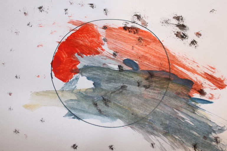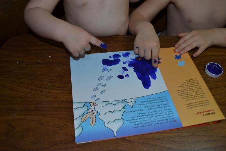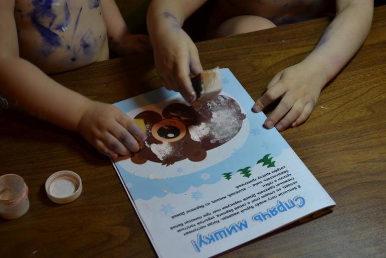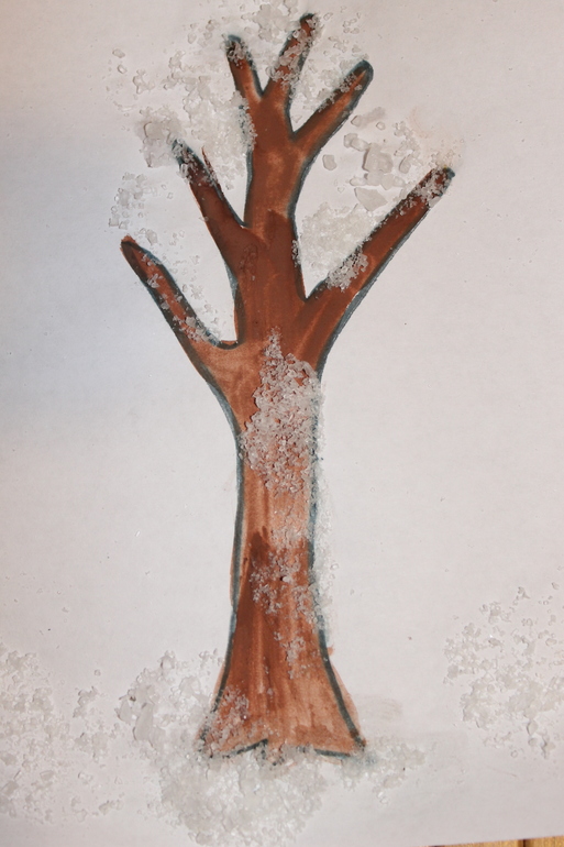 Рисовали красками елку (изначально она карандашом была нарисована) и снег.