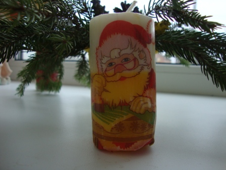 Занялись декупажем свечи новогодней, Ярик все время отбирал свечу!