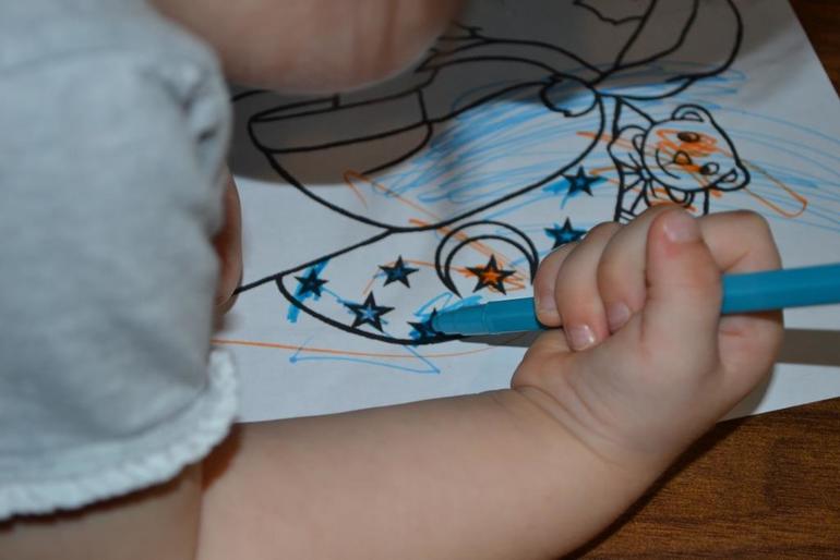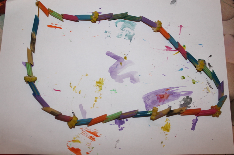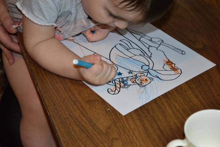 В конце-концов, ребенок нашел себе забаву, рисовал наверное розовые снежинки)