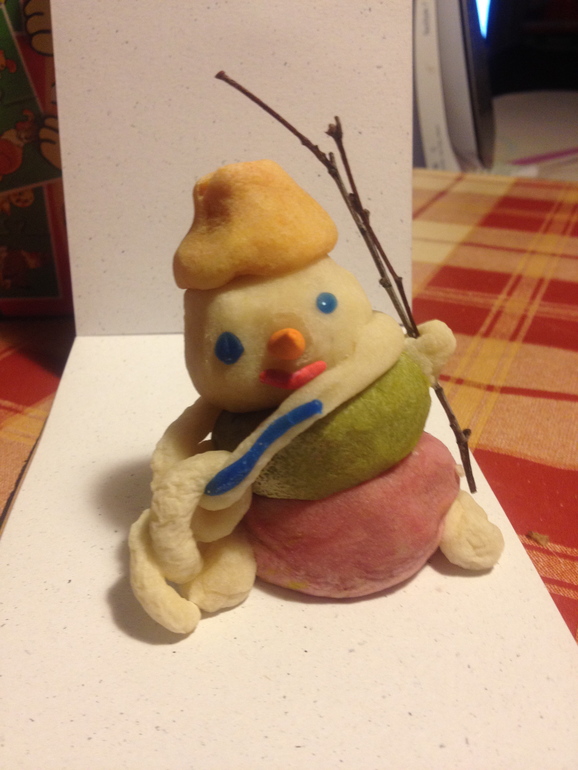 Затем из бумаги наклеили снеговика) Голова готовая была - вырезанная)