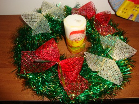Как вам везет, что ребенок может в садике потворить и голову не ламаешь чем увлечь) 20.12 то есть сегодня, делали венок - подсвечник) Девочки, очень легко и красиво получается.