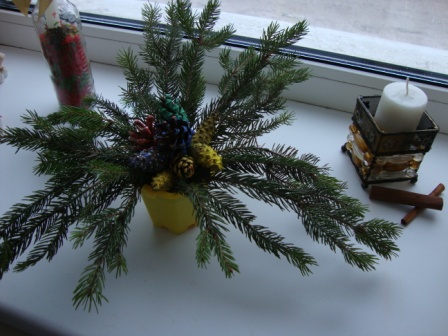 19 декабря - делали зайку, красили шишки по ФМ и делали деревья по временам года