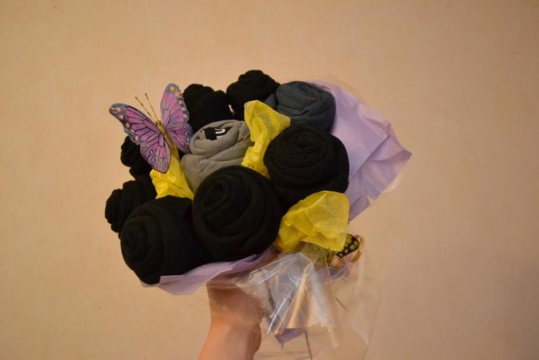 Букет из носков и треселей для папы:)))Не очень получился, но переделывать нет времени:)