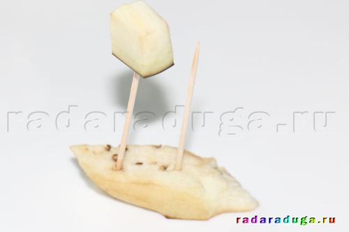Мы внимательно рассмотрели баклажан (уже наверное в 100-й раз :), погладили блестящую поверхность, сравнили её с мякотью, нарезали баклажан кубиками и начали конструирование :) Геометрические формы, гараж для любимой машинки...