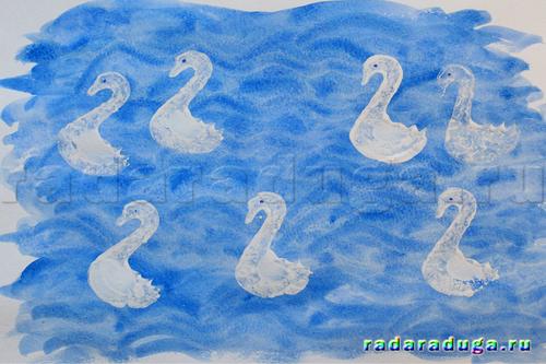Формочка для печенья из набора "Юный кулинар.Лебеди". Гуашью нарисовали плавающих лебедей.