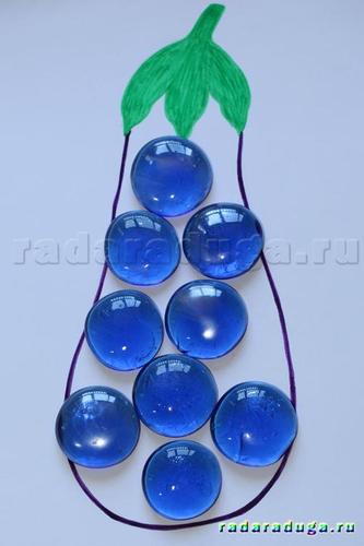 Заранее приготовила заготовки. Выкладывали баклажан стеклянными камушками, раскрашивали его.