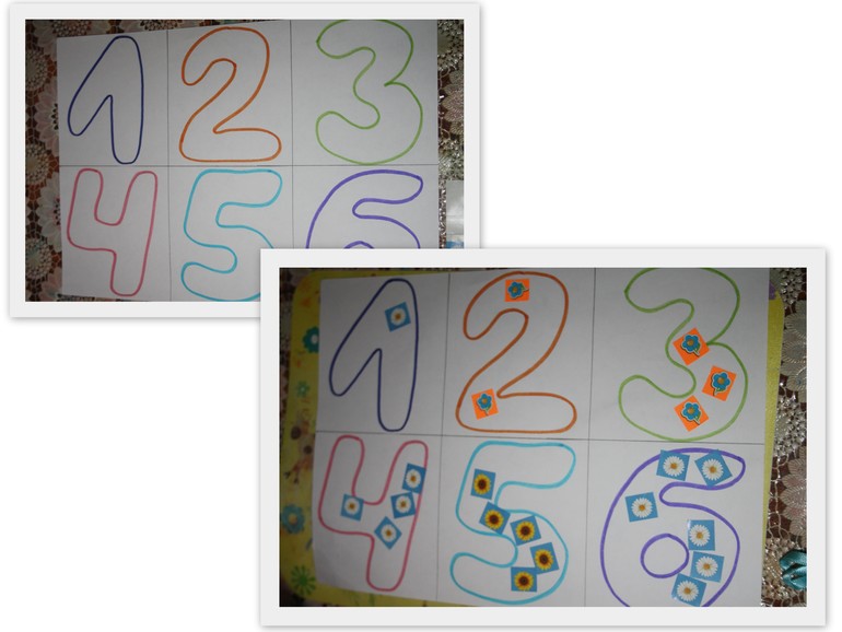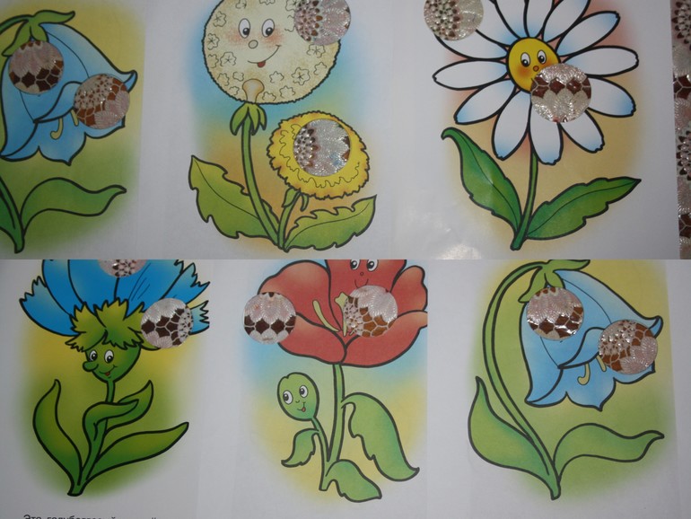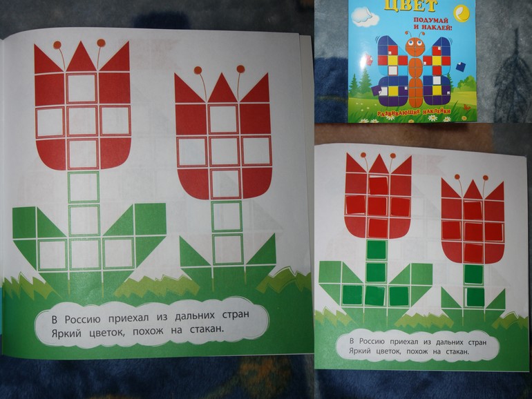 8. Приклеили недостающие квадратики в цветы ("Забавные уроки. Подумай и наклей. Цвет").
