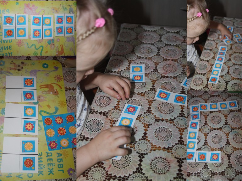 2. Приклеили пару к цветочку, я разрезала и Катя сыграла в цветочное домино.