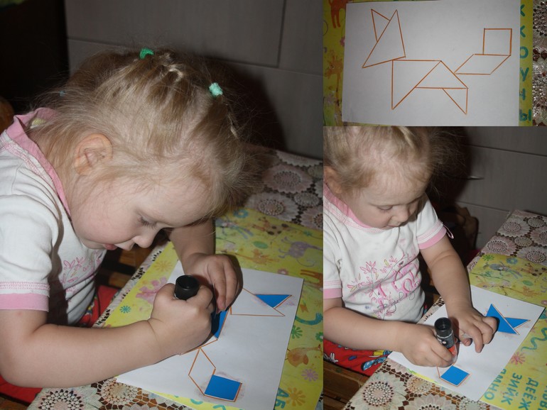 Аппликация. Танграм (заяц и лиса).