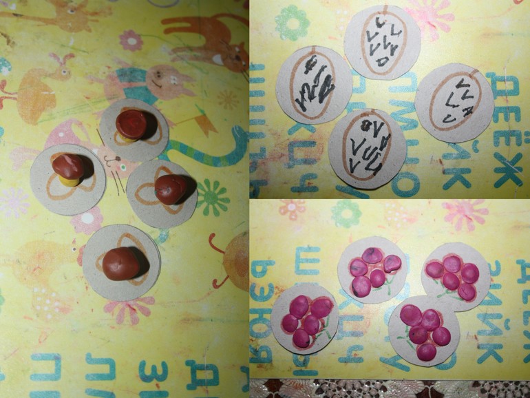 4. Сделали малину (приклеили пластилин) для медведя, грибы (пластилин) для ежа, нарисовали шишки для белки.