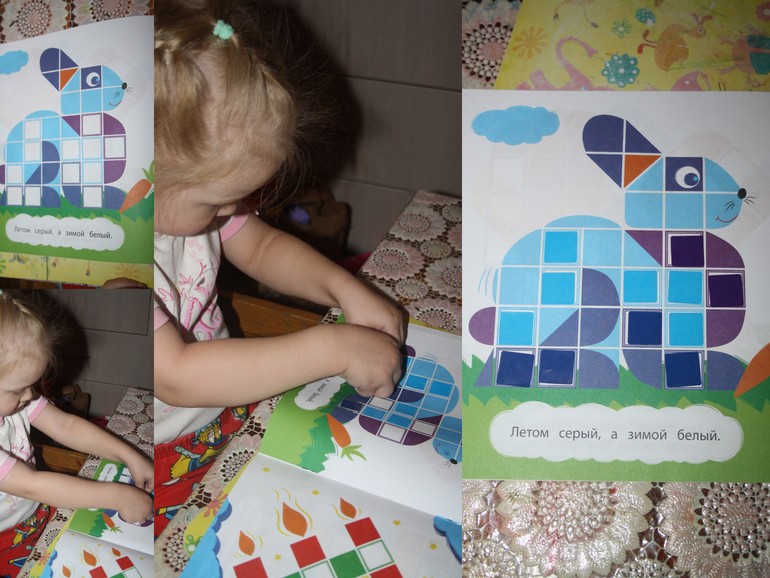 Аппликация из квадратиков-наклеек из книжки.