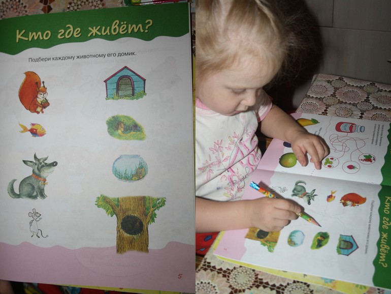 1. Соединили животных со своими домиками. Вспомнили домашних и диких животных.