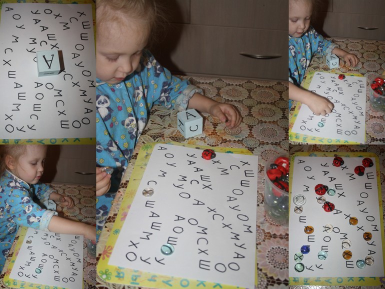 7. Поиграли в игру: бросали кубик с буквами, выпавшую букву закрывали камешком.
