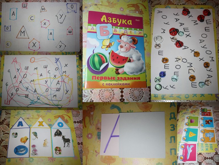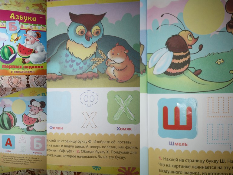 2. Нашли все изученные буквы в книжке "Первые задания с наклейками. Азбука". Приклеили и раскрасили их.