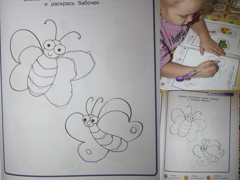9. Обвели бабочек по пунктирной линии (Серия "Умные книжки"). Раскрашивать не захотела их.
