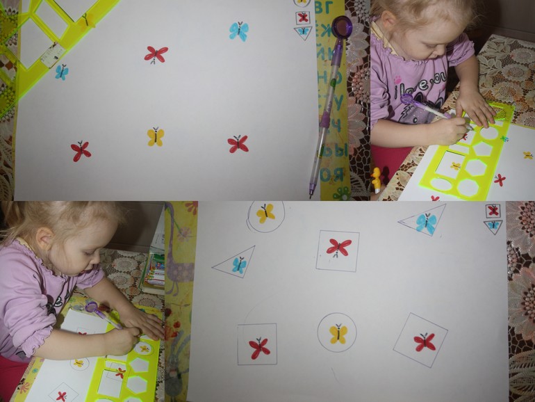 11. Нарисовали домики (геометрические фигуры) для бабочек по линейке-трафарету.