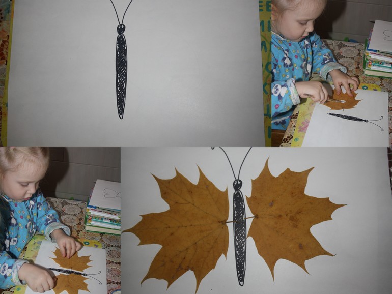 10. Аппликация из листьев (листья были засушены еще в прошлом году):
