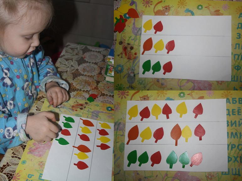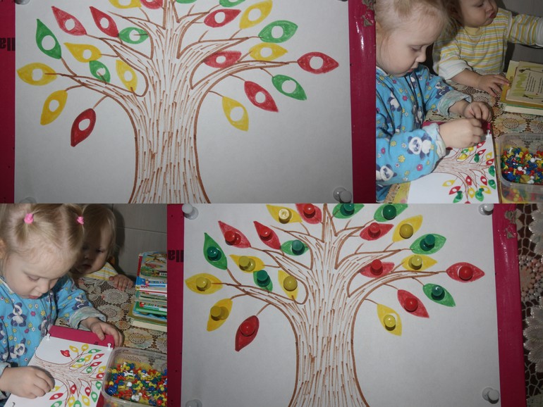 7. Раскрасили листья по инструкции -- большой, средний или маленький с опорой на цвет.
