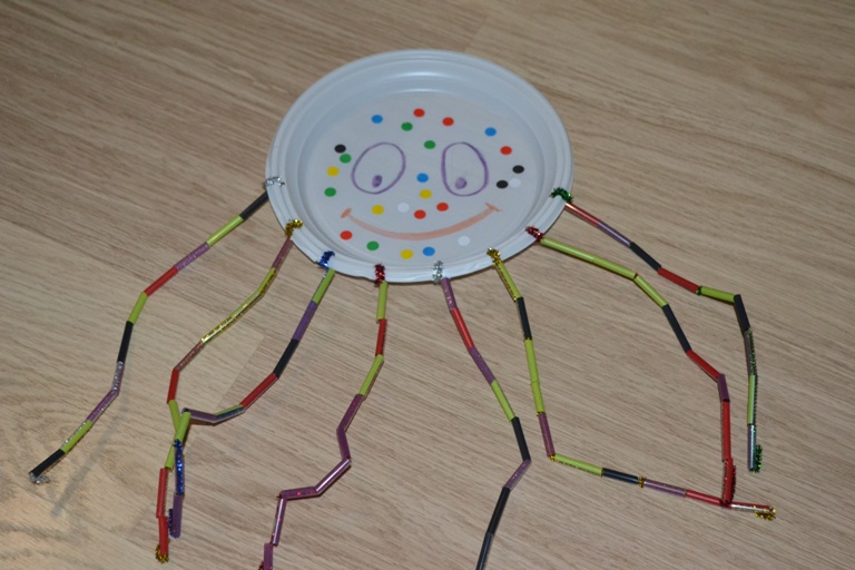 А всего лишь нужно: одноразовая тарелка, синельная проволока и трубочки для коктейля.