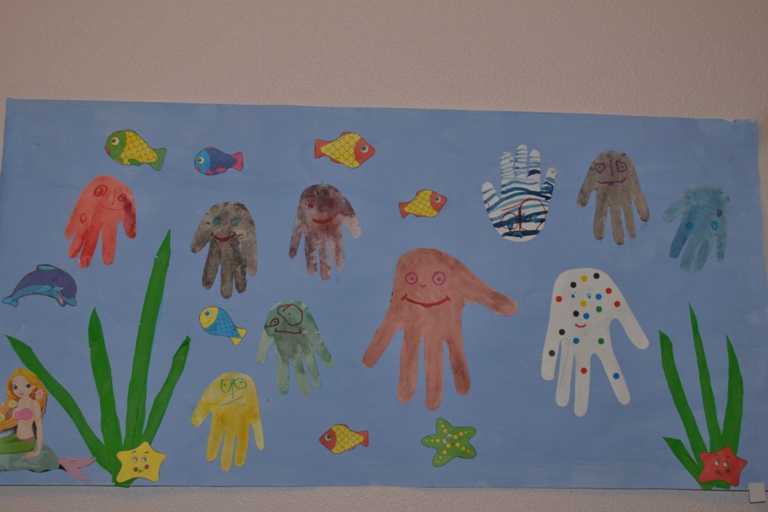 Ну уж если затронула тему осьминогов, то покажу еще один наш "шедевр". У него даже есть название "Разноцветная семейка"