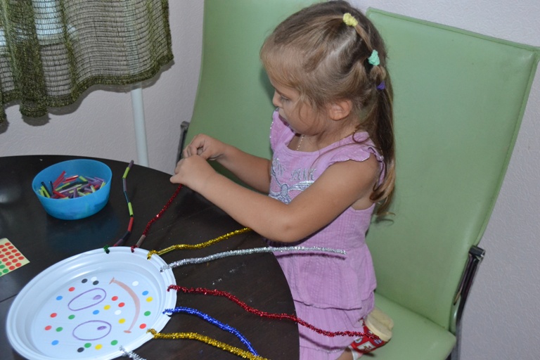 А теперь украсим щупальца. Настоящее занятие по мелкой моторике