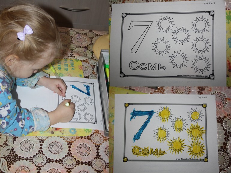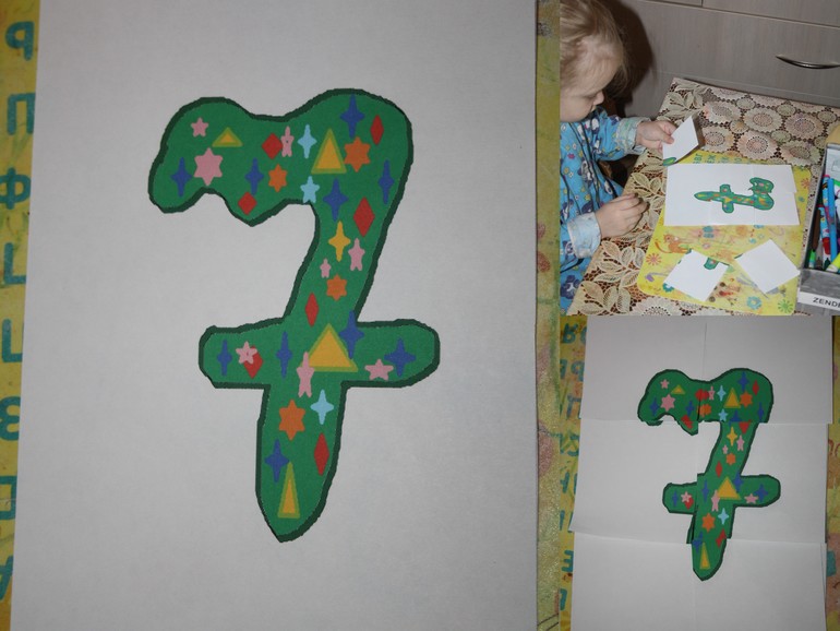 Вот и дошли мы с Катюшей до цифры 7. Нового ничего не выдумывали, немного поиграли используя старые приемы.