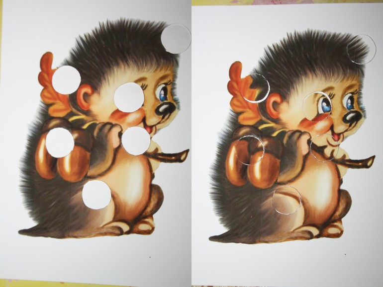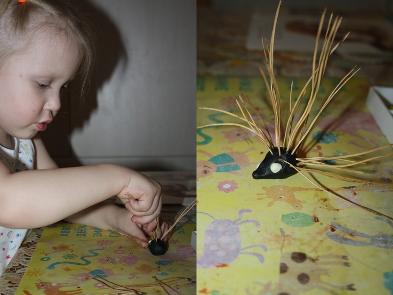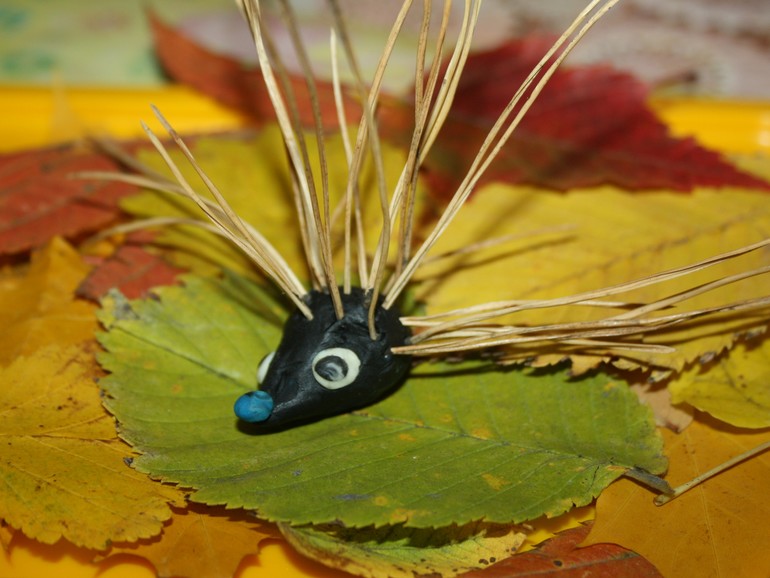 8. Сделали ежа (пластилин, хвоя сосны, листья).