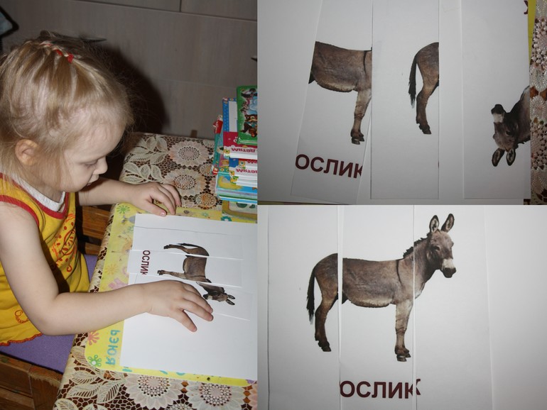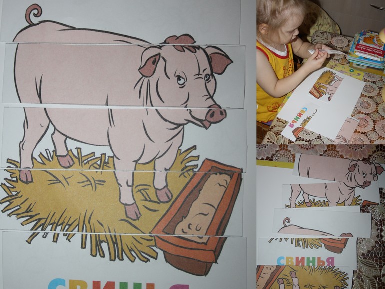 1. Составили разрезные картинки «Ослик» и «Свинья».