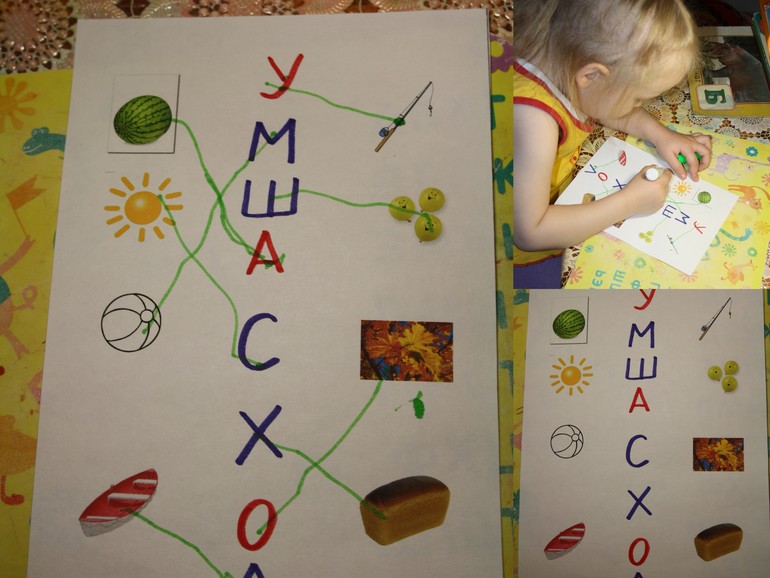 4. Так как ослика звали Алфавит, то он очень любил буковки. Соотнесли первую букву картинки с буквой.
