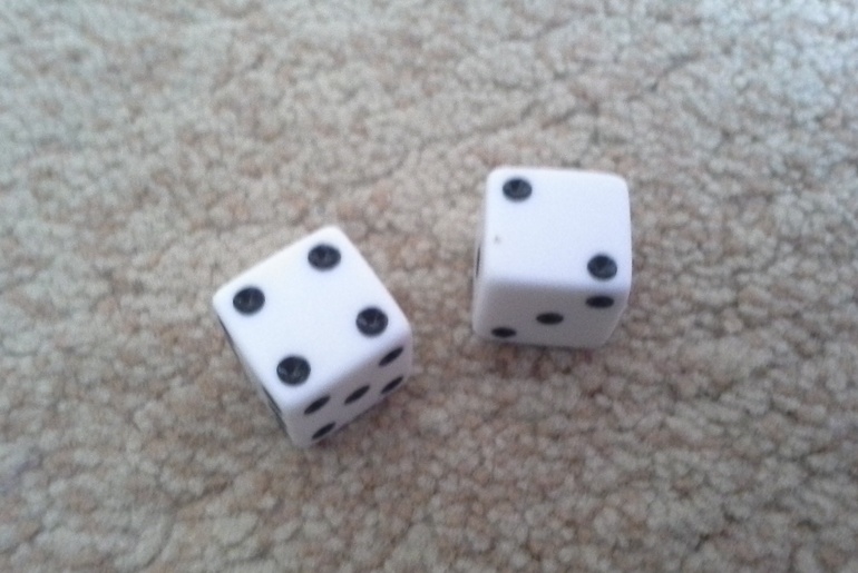 И вот еще хорошая тренировка. Берём 2 кубика для настольных игр.Один кидает Ульяна, другой я. Смотрим, у кого больше. Тот забирает медведя. У кого меньше - тот Машу.