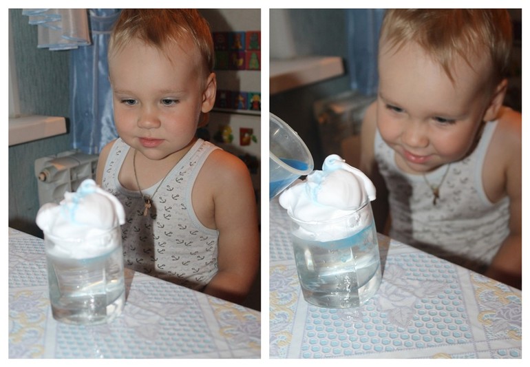 Вечером делали опыт "Дождь из облака" (пена для бритья) Наблюдали за "дождиком". Идею брала здесь. А вот, что получилось у нас.